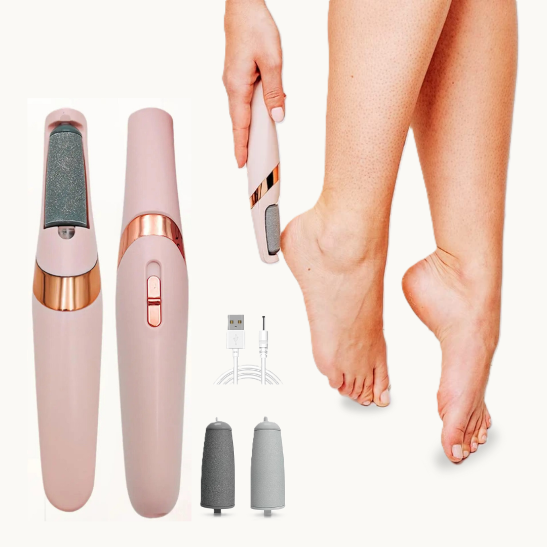 Con su diseño ergonómico y tecnología recargable e impermeable, elimina fácilmente la piel muerta y los callos más duros en segundos — ¡como si hicieras una pedicura profesional en casa!